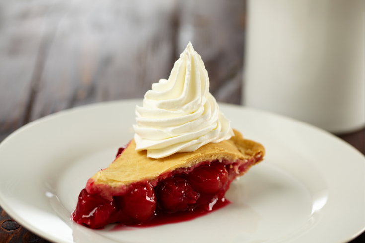 a flaky, buttery crust filled with juicy, plump cherries served with a scoop of vanilla ice cream