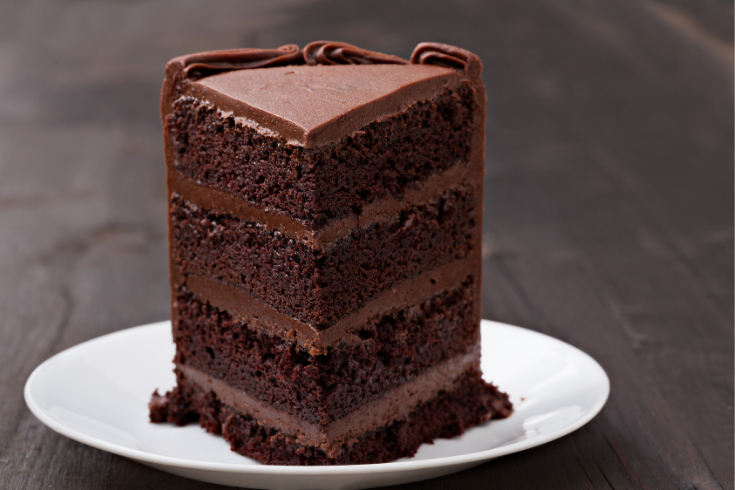 layers of moist chocolate cake, chocolate buttercream, topped with a caramel sea salt drizzle