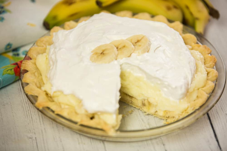 a buttery, flaky crust filled with a smooth and luscious banana-flavored custard topped with a generous layer of whipped cream