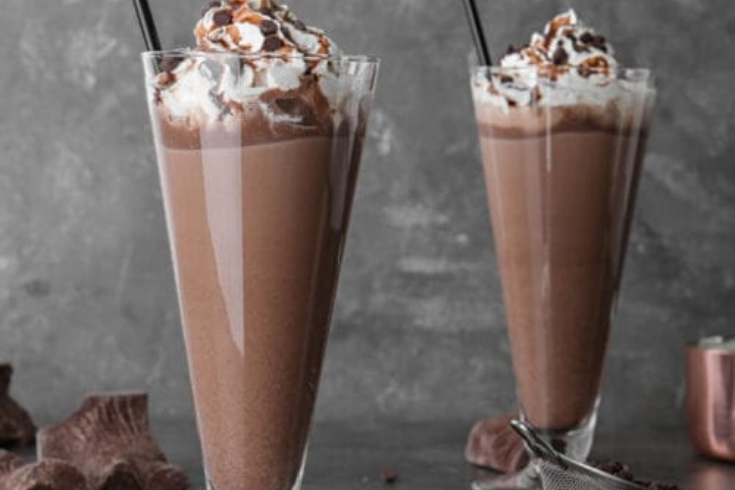 milkshake made with either chocolate ice cream or with vanilla ice cream and chocolate syrup