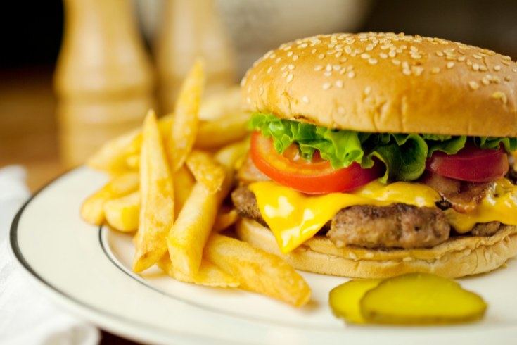 cheeseburger (lettuce & tomatoes optional) served with a side and a drink
