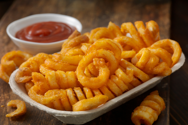 spiral shaped potatoes, lightly seasoned and fried to crispy perfection