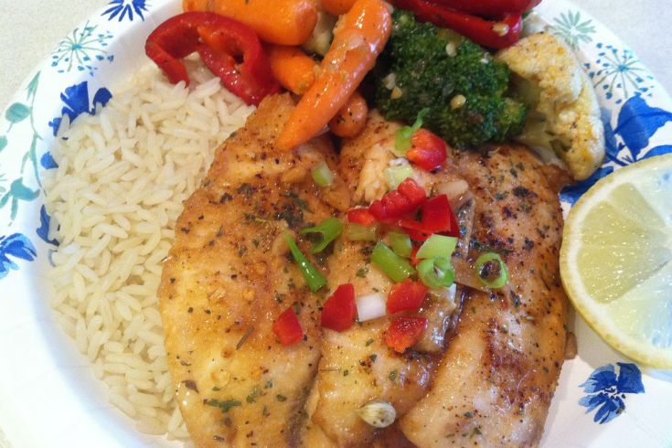 beautifully seasoned grilled tilapia with a touch of lemon juice and your choice of 2 sides